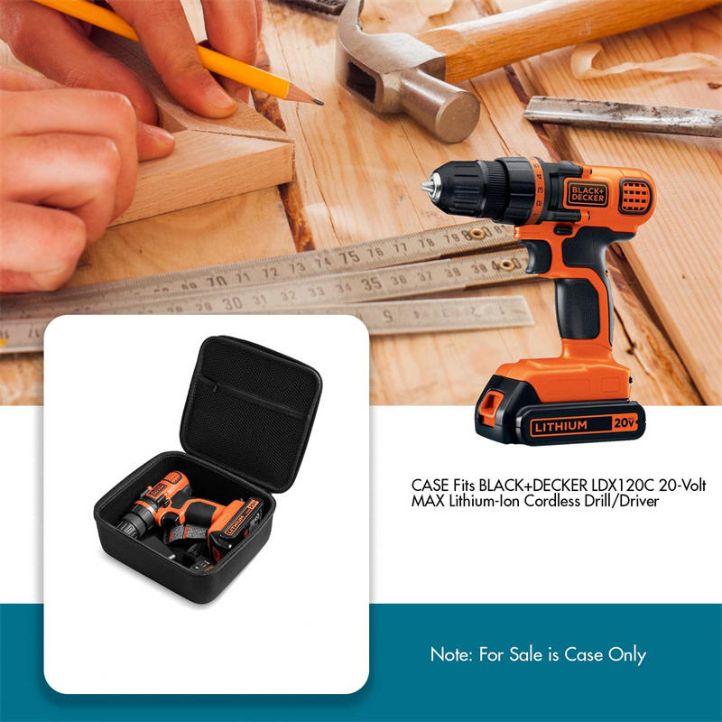 Boîte à outils professionnelle, Compatible avec les machines BLACK + DECKER LDX120C, capacité 20 Volt MAX Lithium-Ion, perceuse sans fil ou conducteur, stockage de voyage, boîte à outils EVA