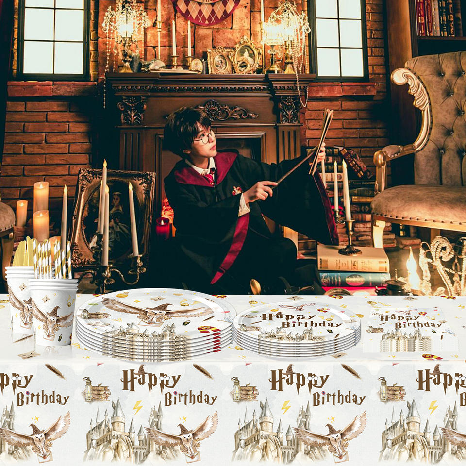 Ensemble de fête d'anniversaire de l'Académie de magie pour enfants de Harry comprend des drapeaux de bannière, des articles de table jetables, Noël, Saint-Valentin