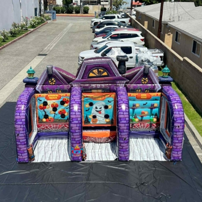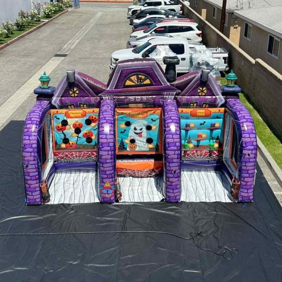 Jeu de Carnaval Gonflable 3-en-1 Effrayant en PVC pour Événements Extérieurs, Trunk-or-Treat, Festivals d'Automne, Fêtes d'Halloween, Écoles