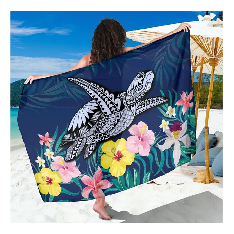 Hawaii coloré Hibiscus tortue polynésien femmes sarong plage couvrir sarong maillot de bain paréo enveloppement mousseline de soie écharpe pour maillots de bain