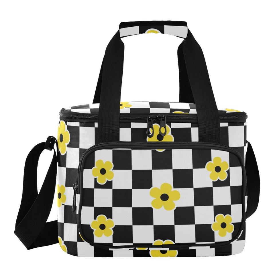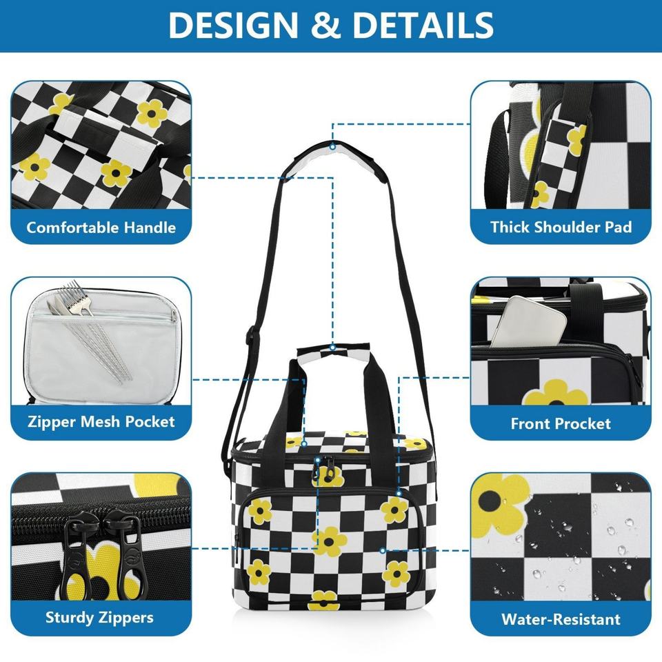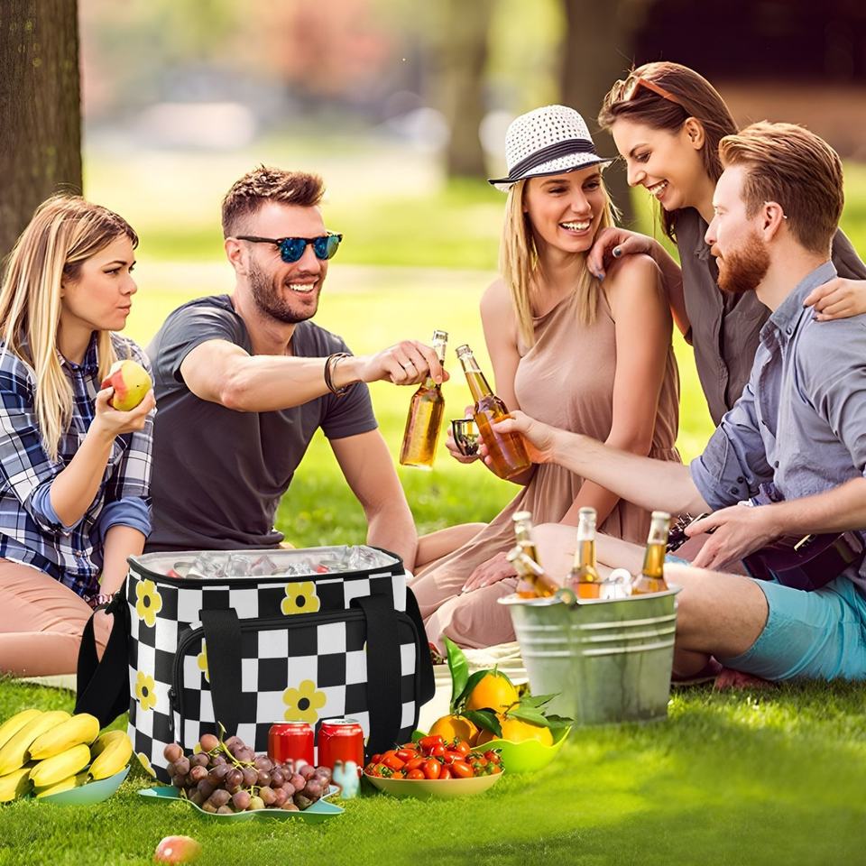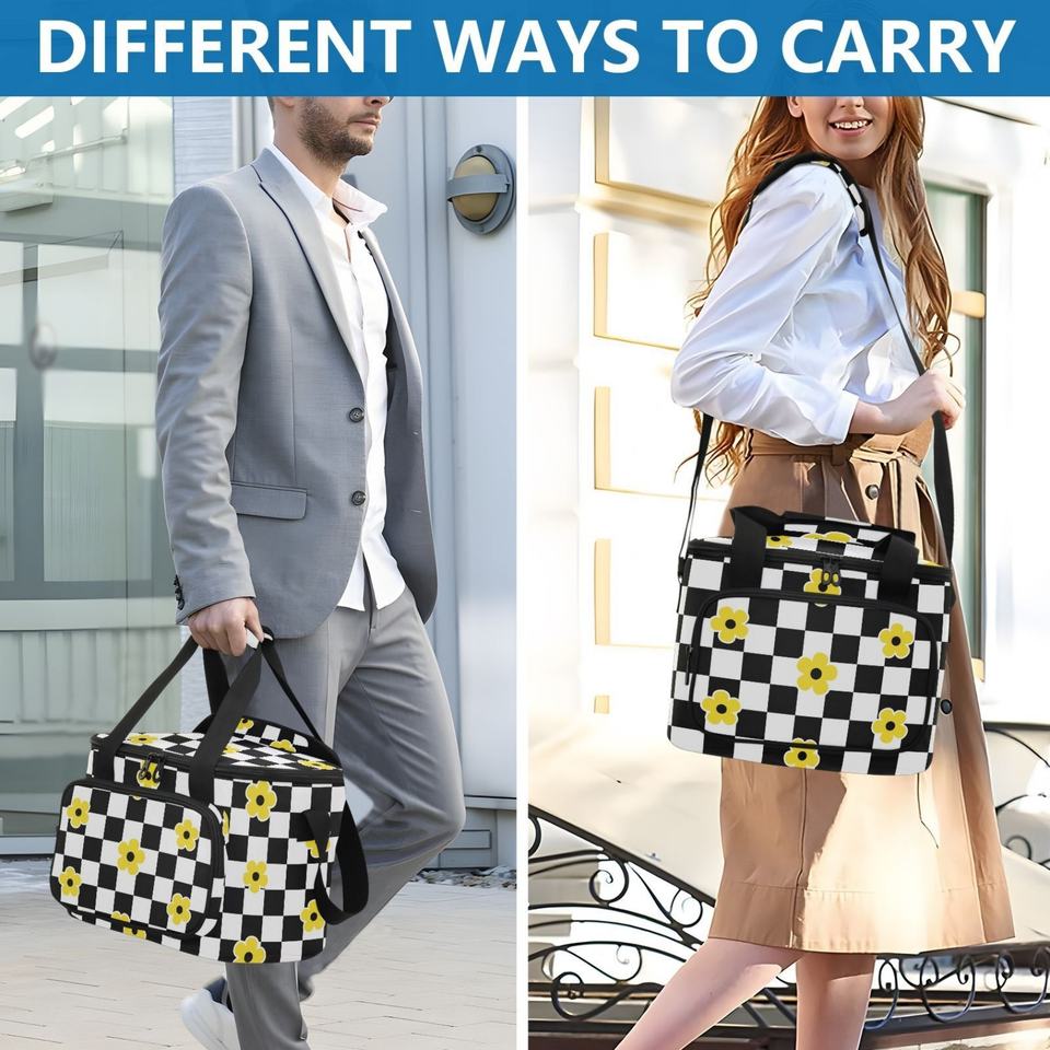Sac isotherme réutilisable à motif floral hawaïen avec compartiment pour glace et bandoulière réglable