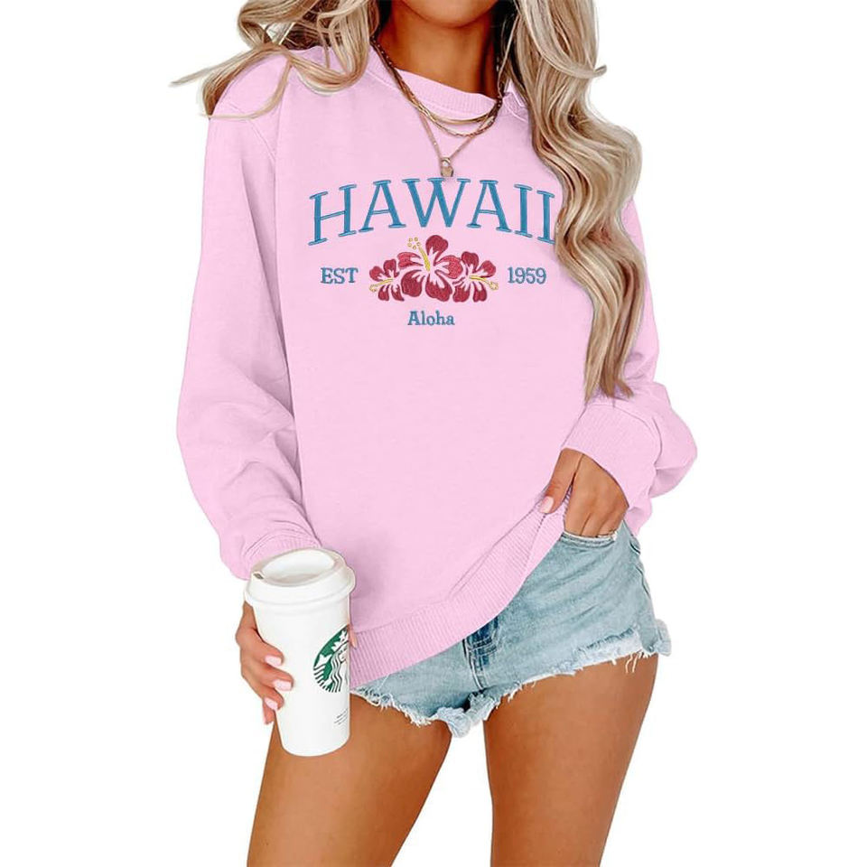 Sweat-shirt brodé Hawaï, chemise Hawaï Aloha State, vintage 1959, pull à manches longues brodé, GK Leather Industries