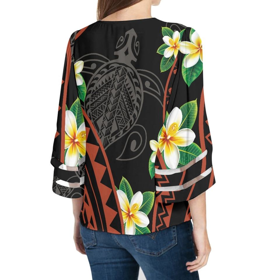 Hawaii fleurs et tortue Design polynésien Tribal tatouage imprimé Blouses mignon surdimensionné col en v femmes Blouses t-shirts pour femmes