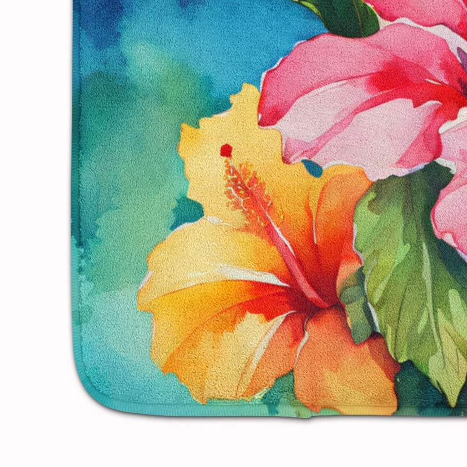 Hawaii Hawaiian Hibiscus Watercolor Memory Foam Bath Mat Machine Washable Anti-Fatigue Kitchen Rug Comfort Cushion