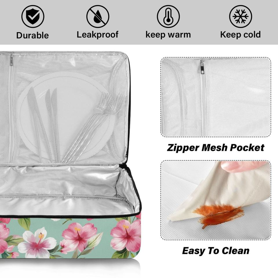 Sac isotherme à motif floral Hibiscus rose hawaïen personnalisé pour casseroles, transport de pizzas et livraison de repas