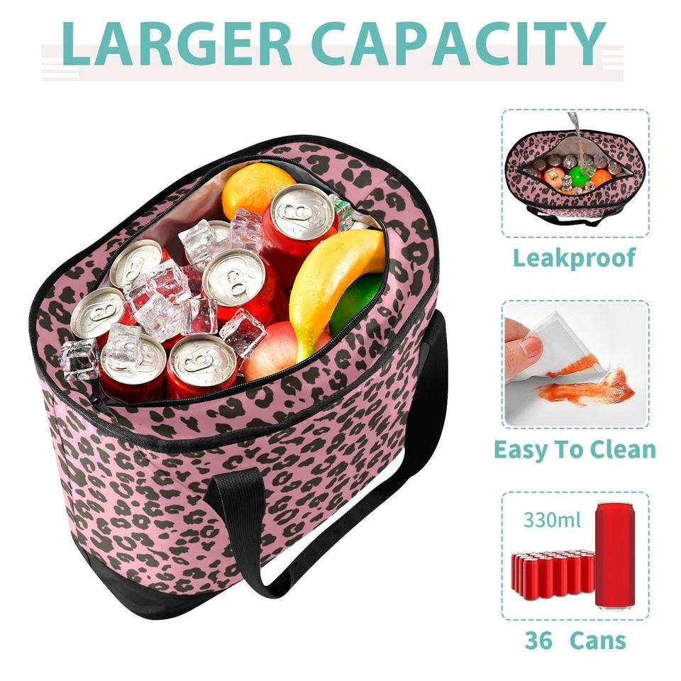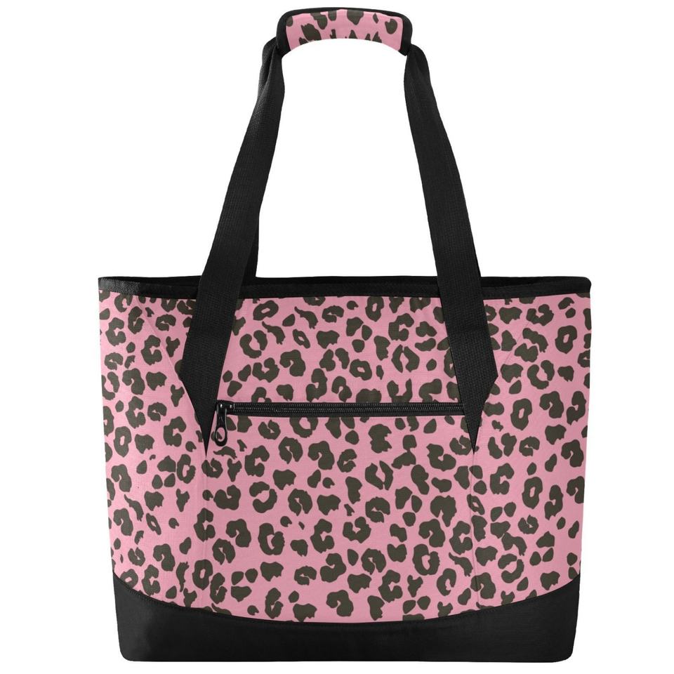 Sac isotherme à bandoulière multi-compartiments motif léopard rose hawaïen personnalisé – Sac fourre-tout isotherme pour le déjeuner