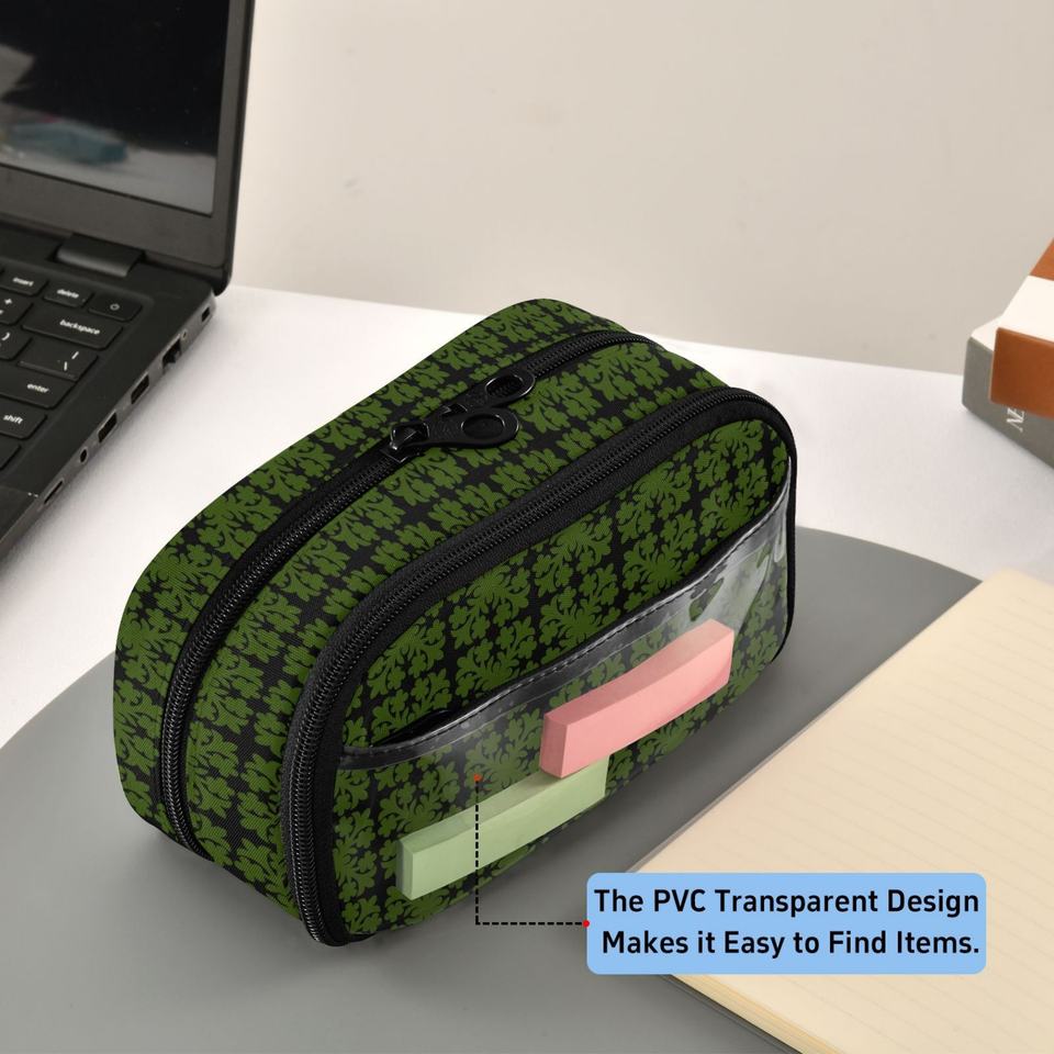 Étui à crayons personnalisé en polyester imperméable avec motif Ulu vert hawaïen, poche en PVC, pour filles et garçons, avec logo personnalisé par sublimation, pour enfants