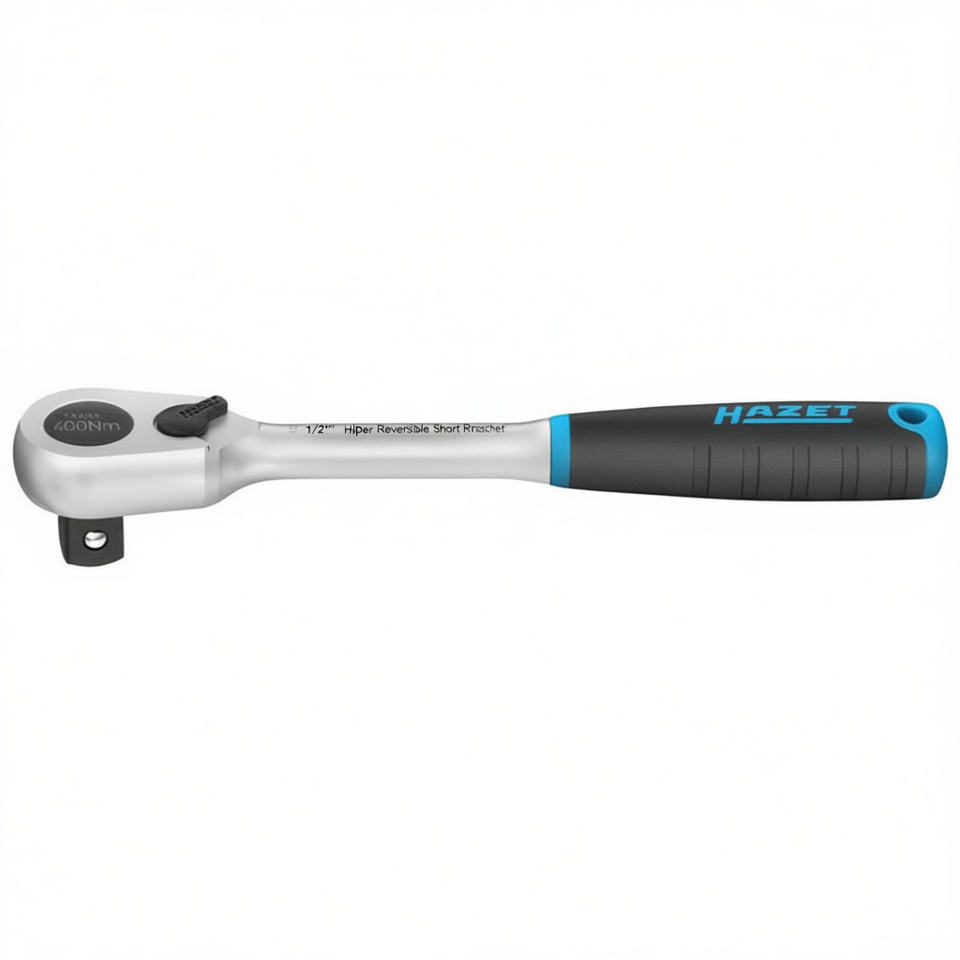 Hazet 1/2'' HiPer Reversible Short Ratchet Wrench with Fine-Tooth for Precision Work