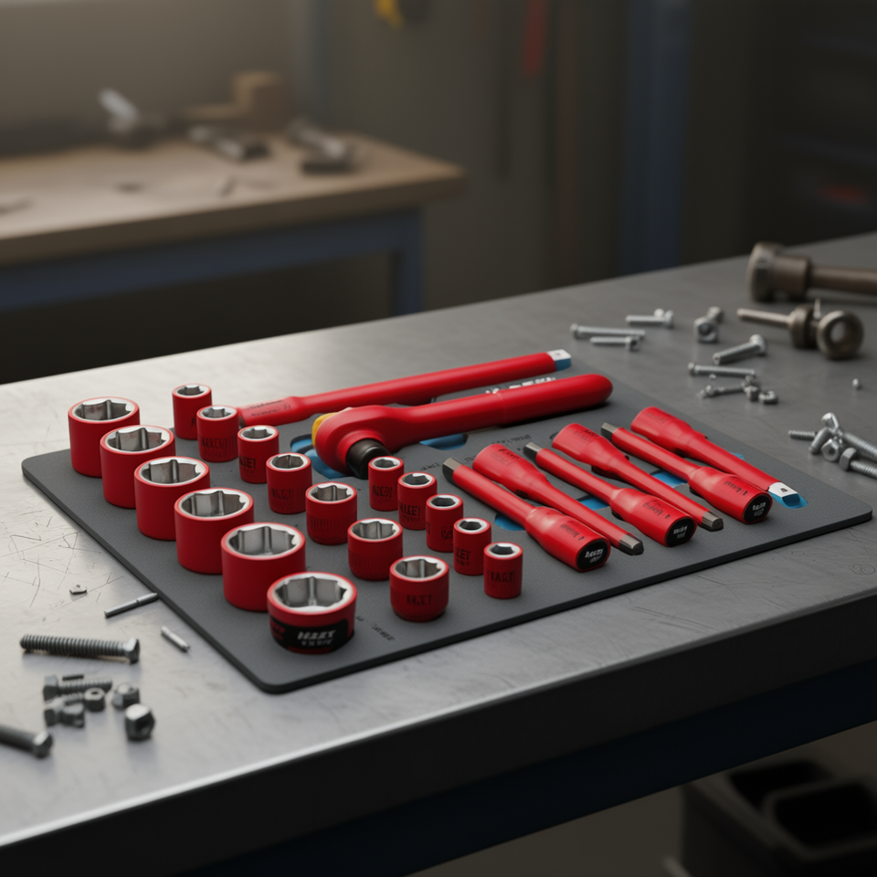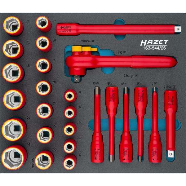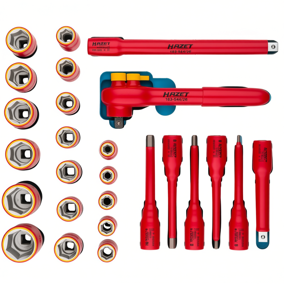 Jeu de clés à cliquet Hazet 1/2'' avec douilles et accessoires, isolation protectrice 1000V, ensemble de 26 pièces