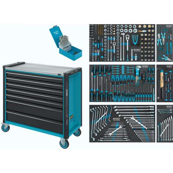 Chariot à outils Hazet Assistant avec 7 tiroirs et un assortiment de 340 pièces, alimenté manuellement pour les ensembles d'outils, livré avec un emballage en coffret rigide