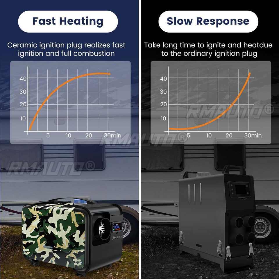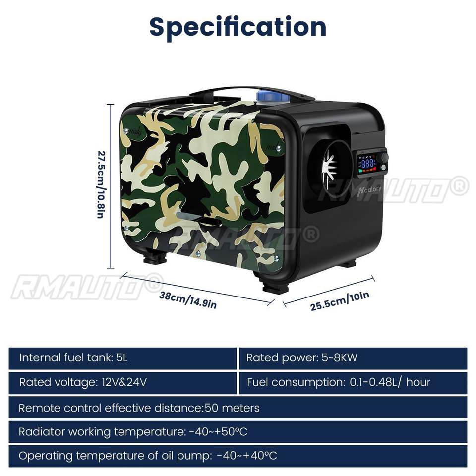Chauffage de stationnement Hcalory Camouflage Tout-en-un 5-8KW 12V pour voiture et camion, Chauffage à air diesel avec écran LCD