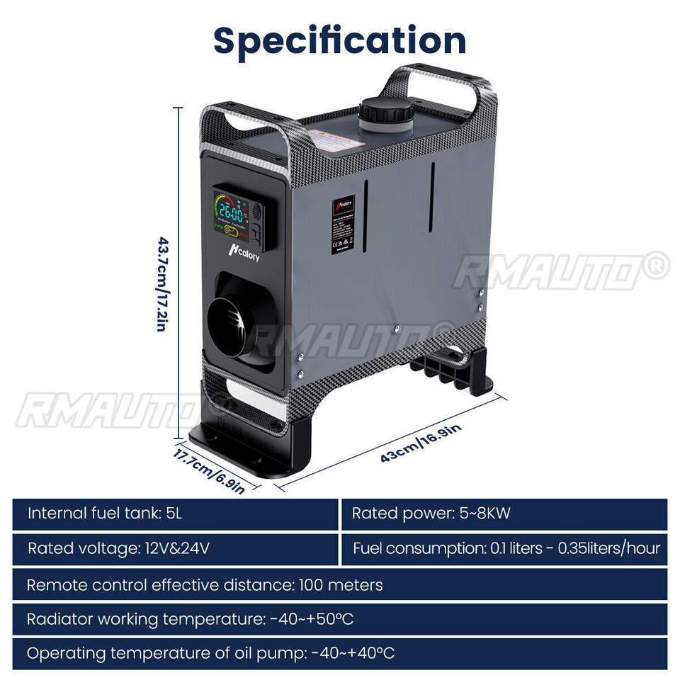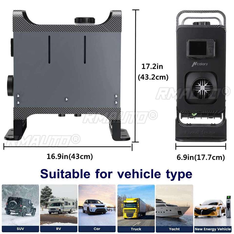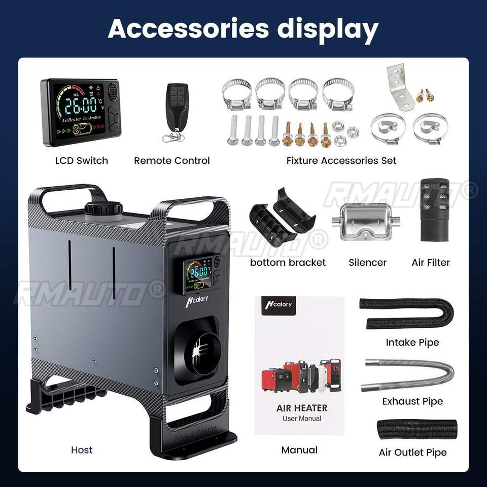Hcalory NOUVEAU Chauffage de stationnement universel 12V 24V pour voiture, unité tout-en-un 5-8KW, chauffage à air diesel à trou unique avec écran LCD