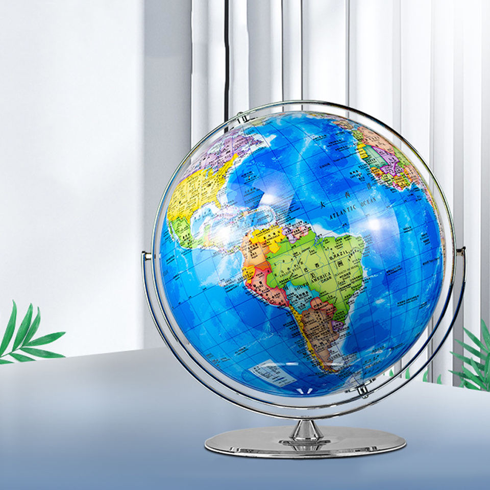 Globe en Cristal Rotatif Hd Base Métallique avec Lampe Géographie Enseignement Carte du Monde Diamètre Globe Globe Modèle 42cm