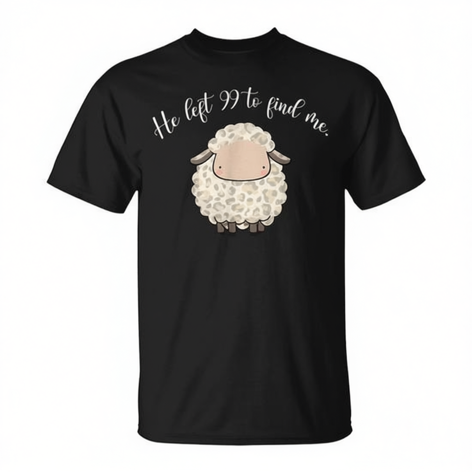 He Left 99 To Find Me Lamb Christian Sheep T-Shirt noir pour adulte unisexe, col rond, manches courtes, impression numérique, cadeau d'église