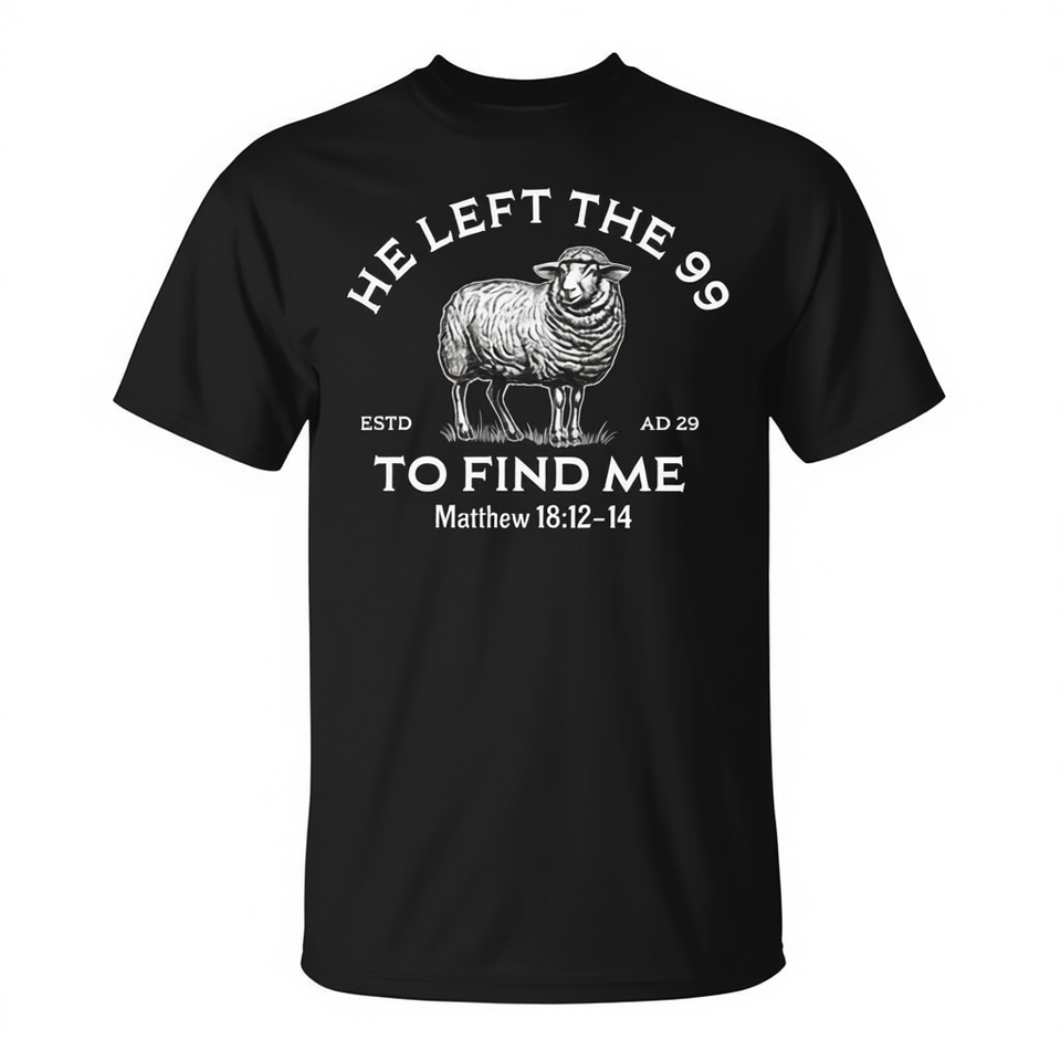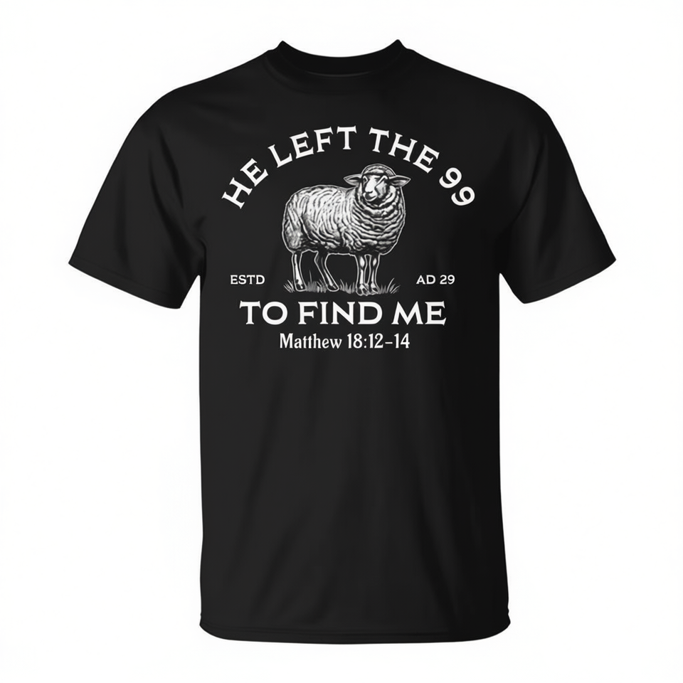 Il est parti pour me retrouver - T-shirt chrétien Matthieu 18:12-14, motif Agneau perdu, Jésus, noir, pour homme