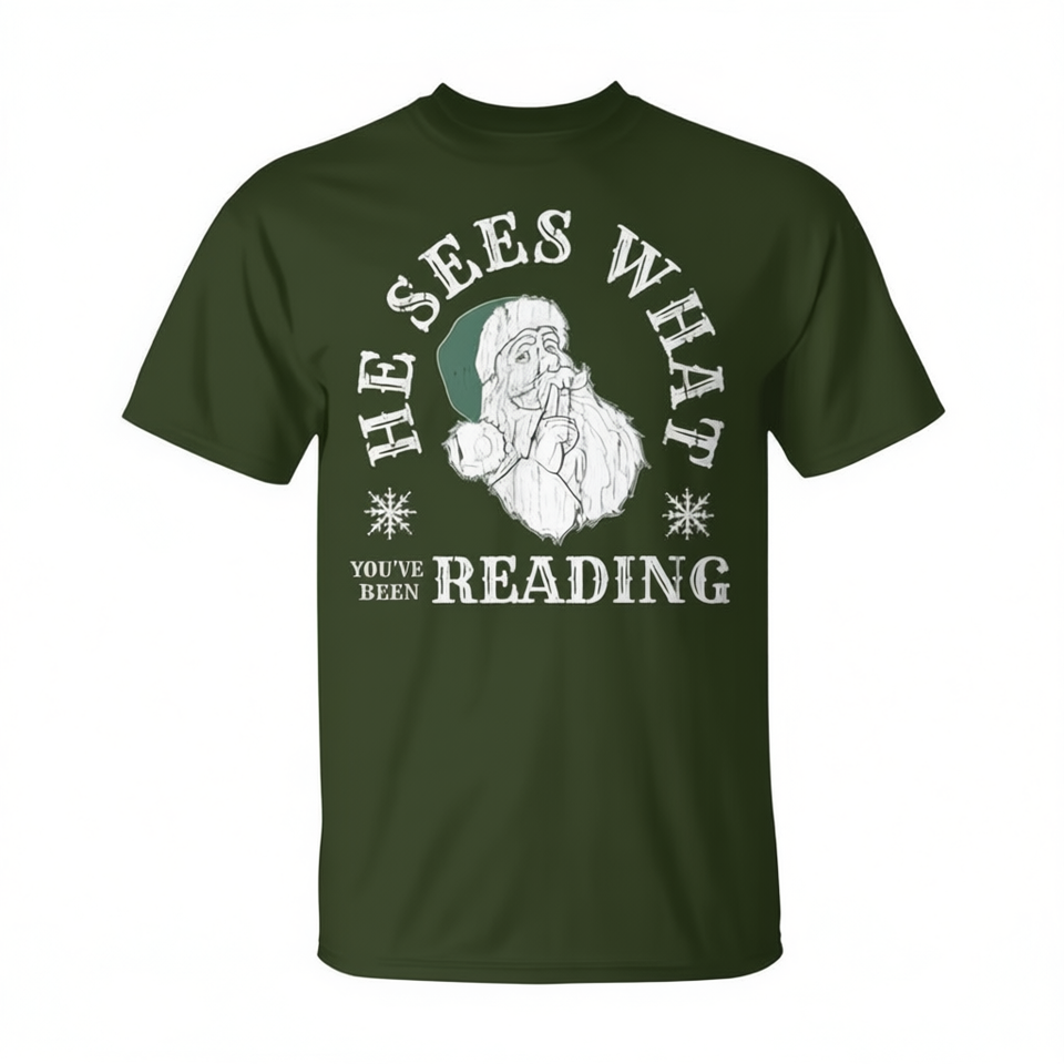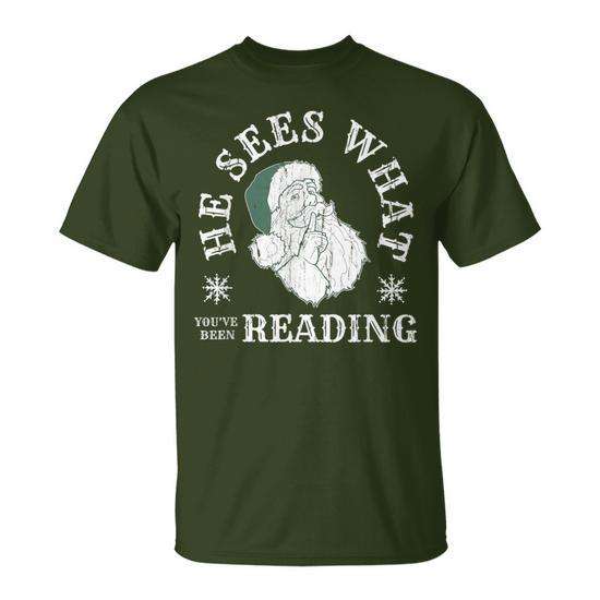 Il voit ce que vous êtes en train de lire T-shirt Père Noël Cadeau de Noël Vêtements unisexes pour hommes et femmes
