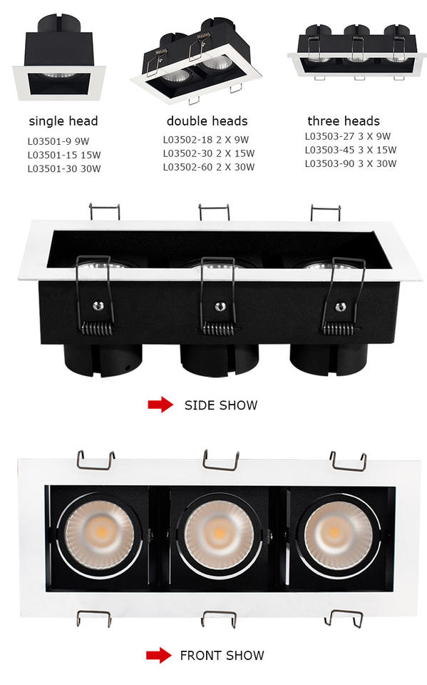 Tête 2x35W Spot Light Adjust Plafonnier LED COB 70W Double Lampes Super Fashion Modèle 12W 15W Rectangulaire Downlight