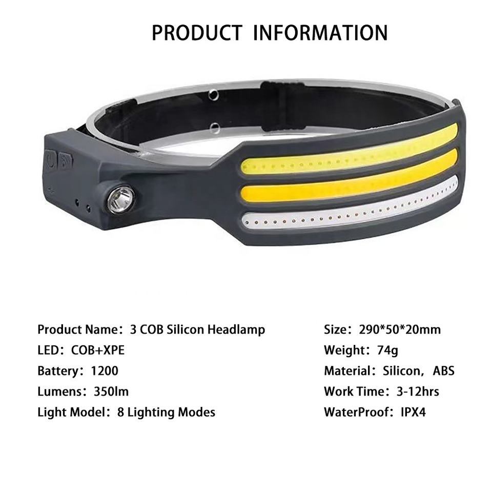 Lampes frontales USB Rechargeable COB Lampes de travail portables Lampes frontales Lampe frontale pour la course à pied Camping Ridi