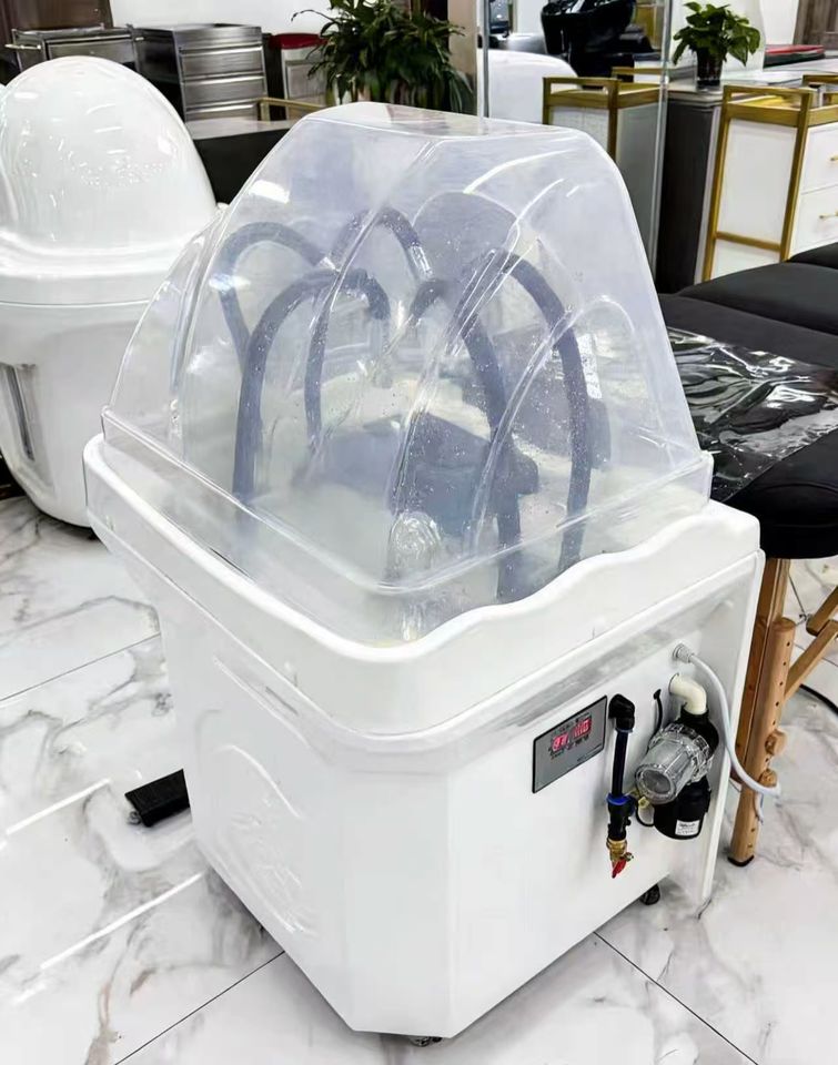 Appareil de thérapie capillaire mobile sans raccordement aux conduites d'eau, avec circulation d'eau pour bac à shampoing, spécialement conçu pour les salons de beauté