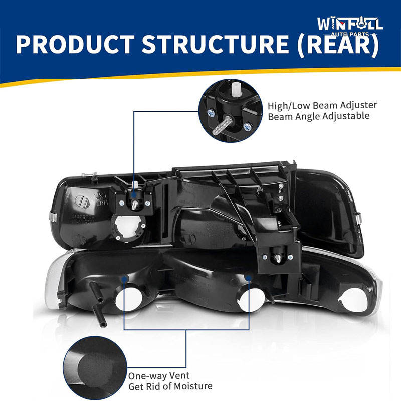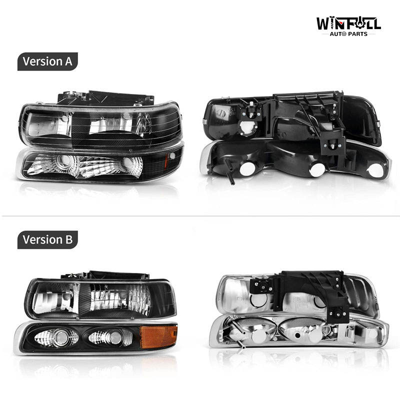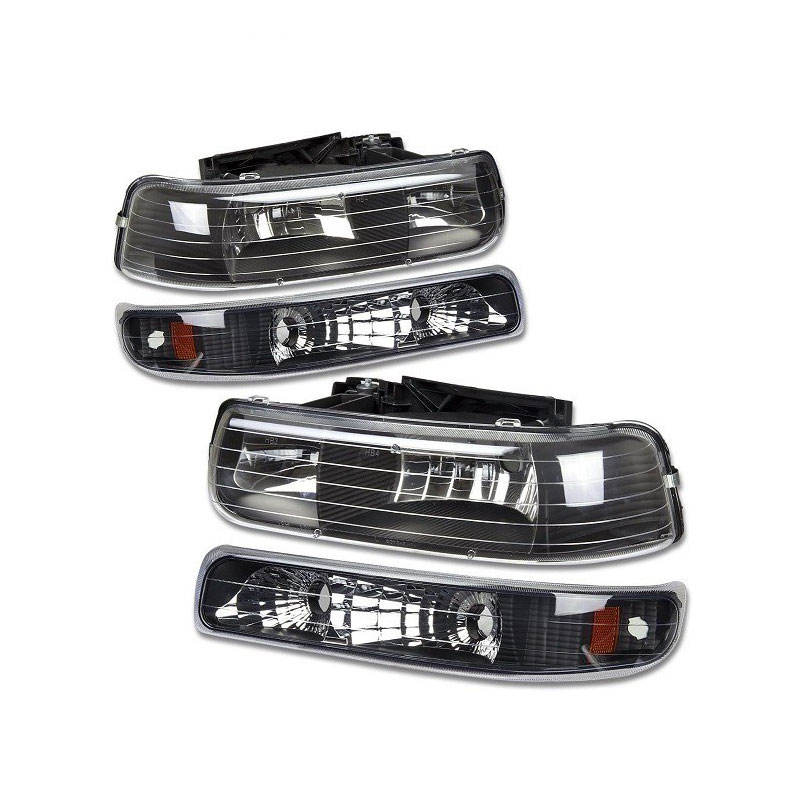 Ensemble de phares 12V 55W neuf compatible avec Chevrolet Silverado 15/25/3500 HD 1999-2002, Tahoe Suburban 2000, boîtier noir, ambre