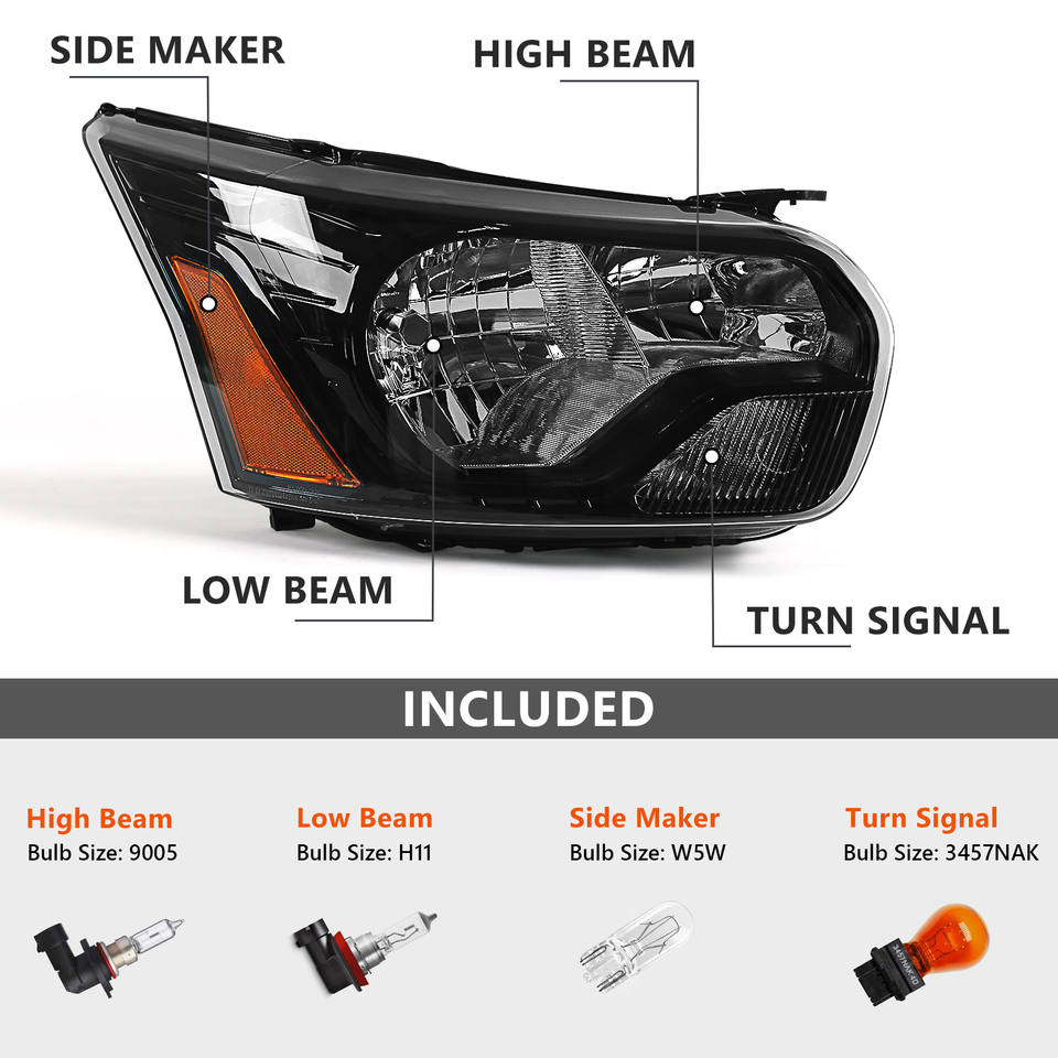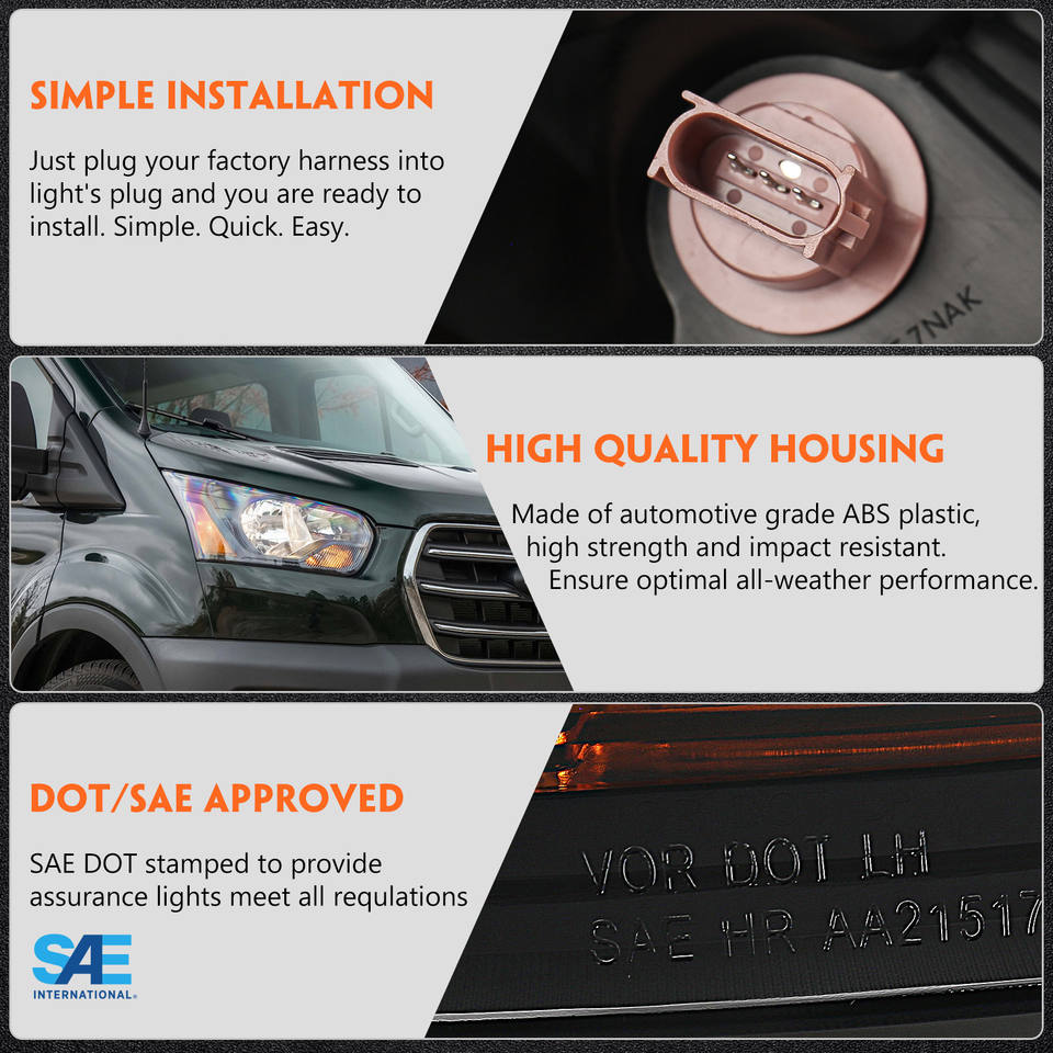 Ensemble de phares pour Ford Transit 150 250 350 2015 2016 2017 2018 2019 2020, boîtier noir