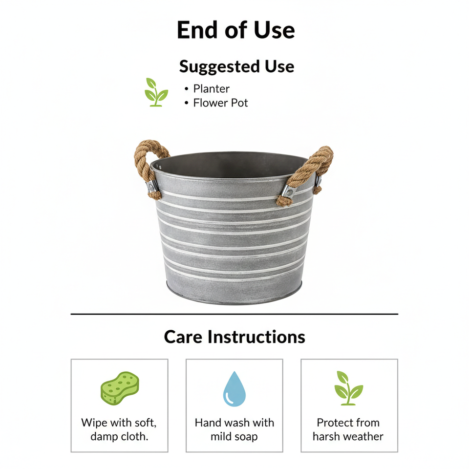 Headway Crafts Pot de fleurs en métal galvanisé rustique, seau en métal, panier vintage
