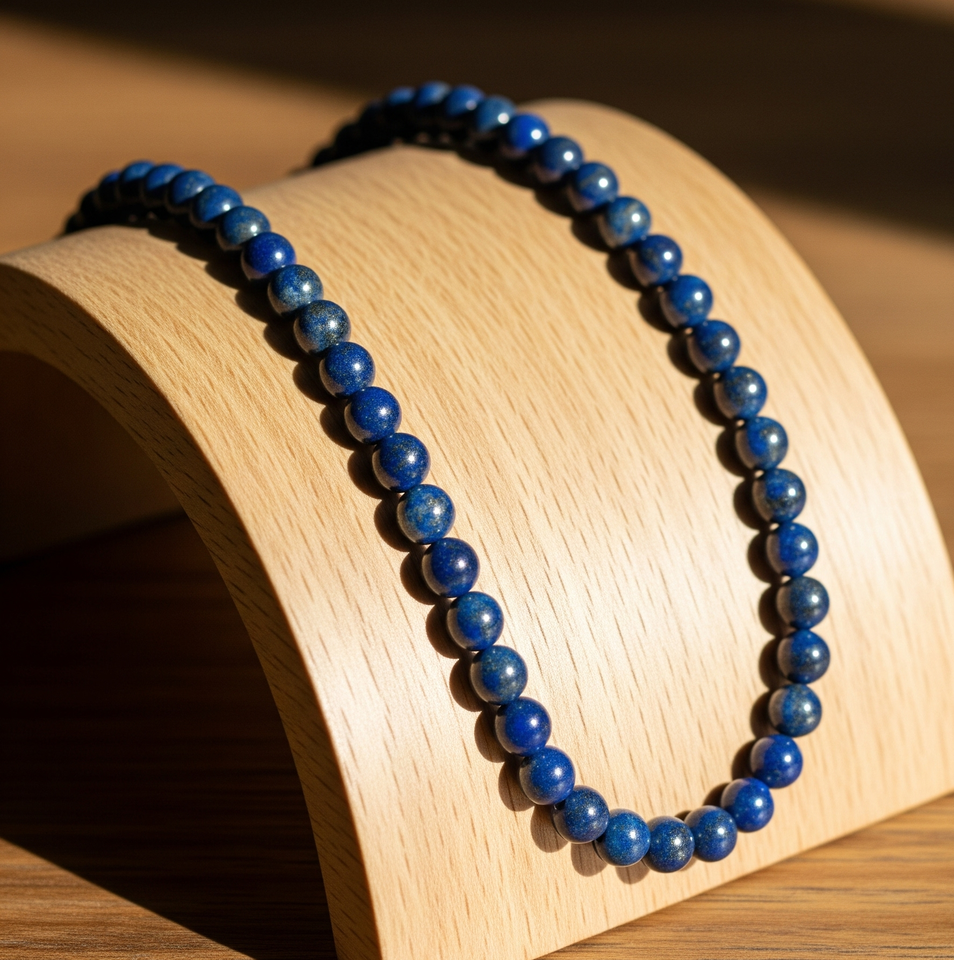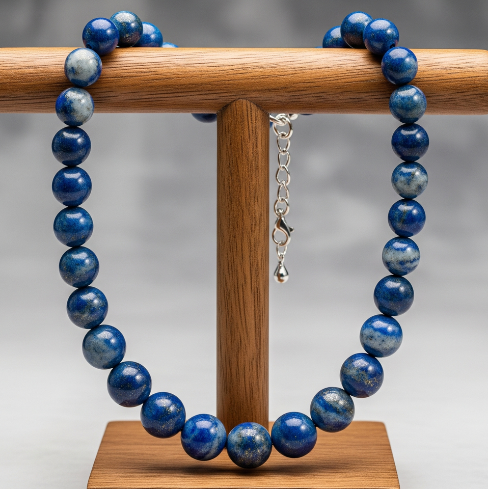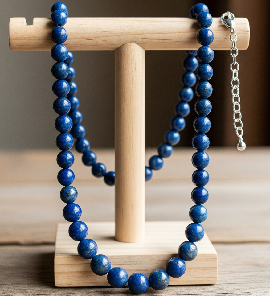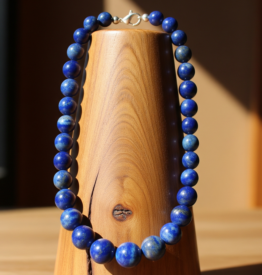 Healing Natural Lapis Lazuli Stone Beaded Necklace Women 18-Inch Silver 925 Lock Hand Knotted Design Trendy Fashion Accessory