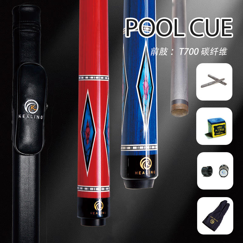 Queue de billard Healing Pool T700 en fibre de carbone, pointe en cuir de porc de 12,4 mm, rouge et bleu roi, ensemble de queues de billard pour le jeu de la neuf balles