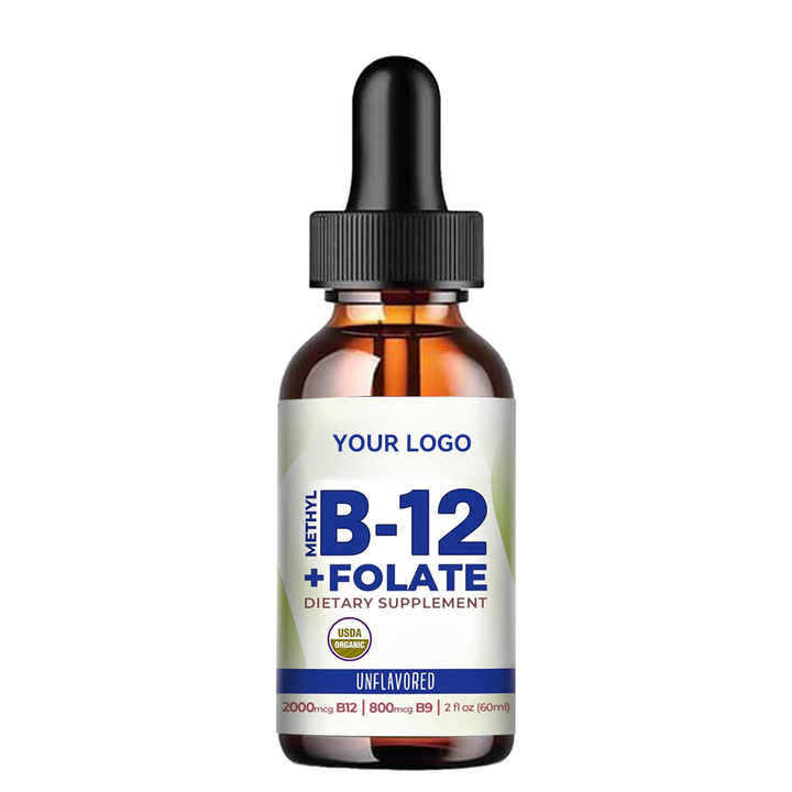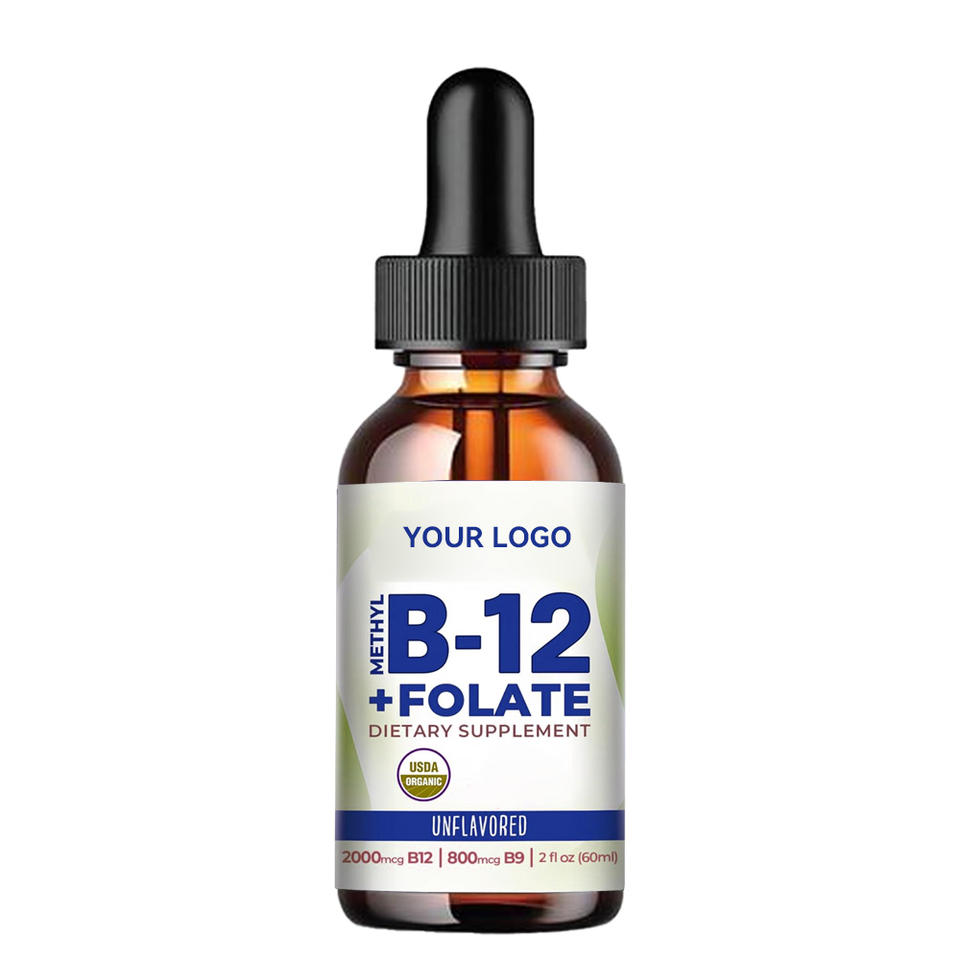 Complément alimentaire liquide oral pour adultes, vitamine B12 + folate, haute absorption, formulation personnalisable, soutien à la santé immunitaire et osseuse