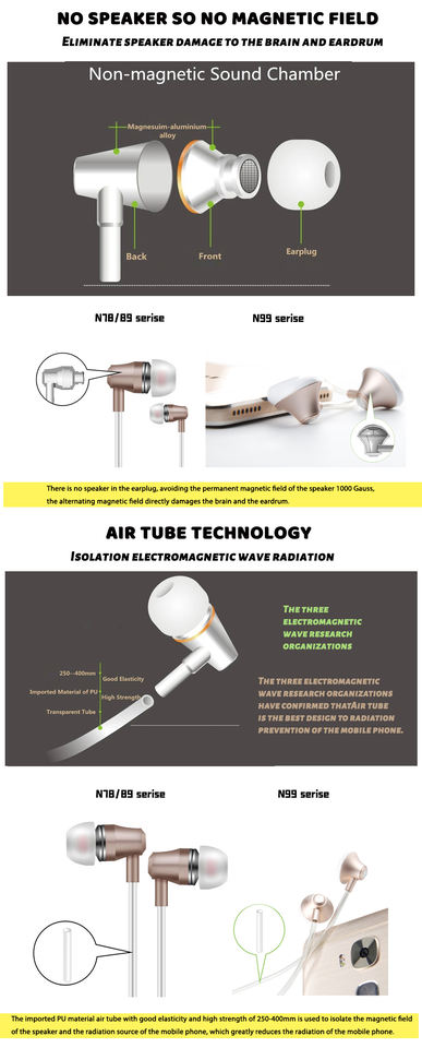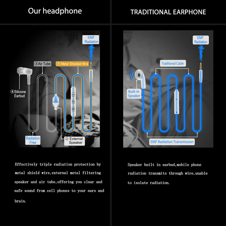 Écouteurs sans danger pour la santé avec microphone, écouteurs à tube d'air, écouteurs sans rayonnement, casques anti-rayonnement binauraux
