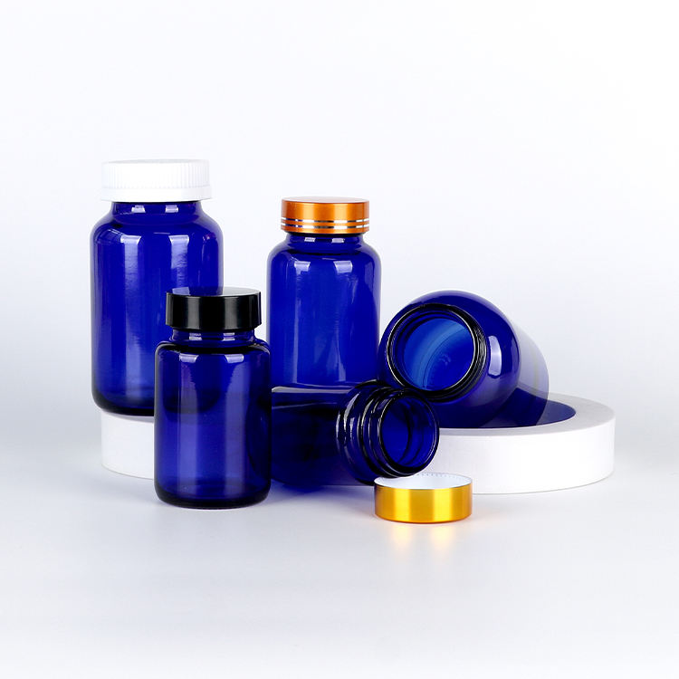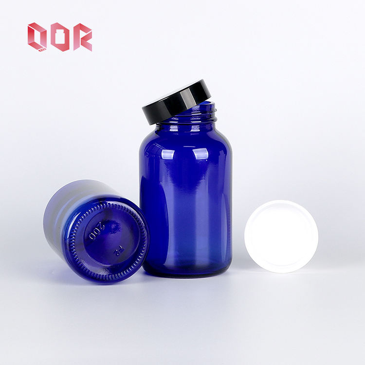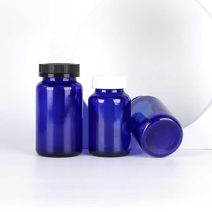 Health care supplement Bottle Container 30ml 60ml Glass round Shape Vitamin Pill Bottles With Child Proof Cap