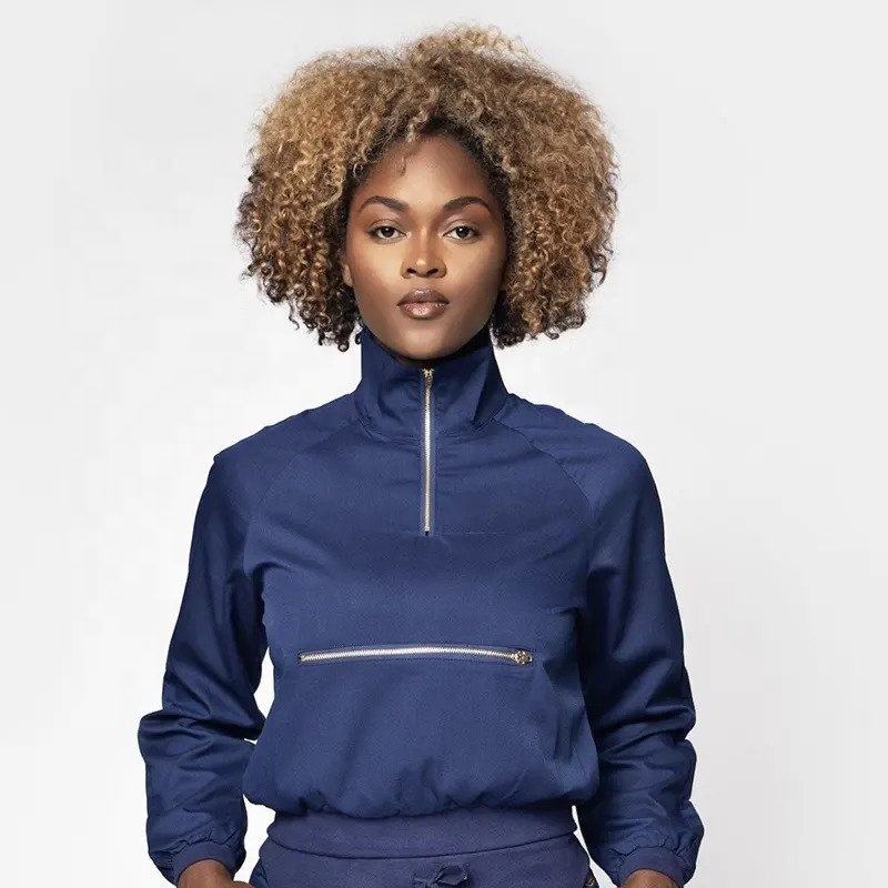 Soins de santé anti-rides à manches longues graphite médical plus veste à glissière soins infirmiers gommages uniformes ensembles veste style gommages costume