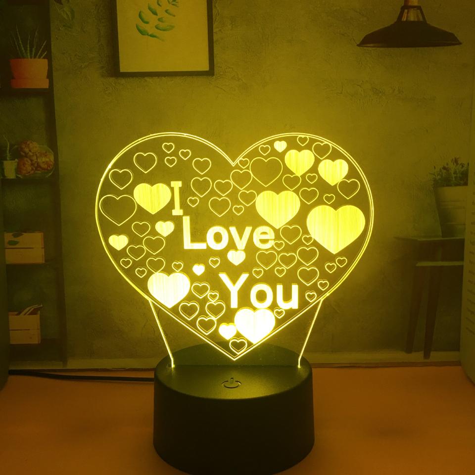 Coeur 3D Acrylique Enfants Lampe De Table De Chevet LED Je T'aime 7 Couleurs Tactile Veilleuse Petite Amie Saint Valentin Cadeau D'anniversaire