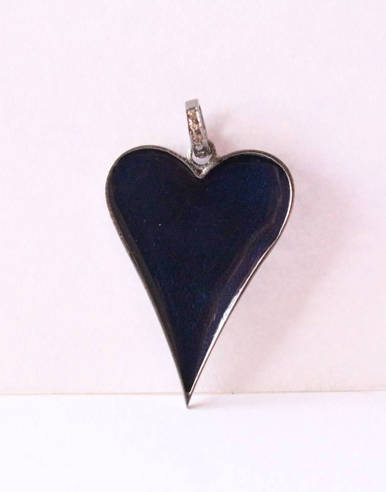 name or words:Heart Blue Enamel Pave Diamond Pendant