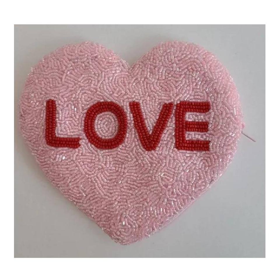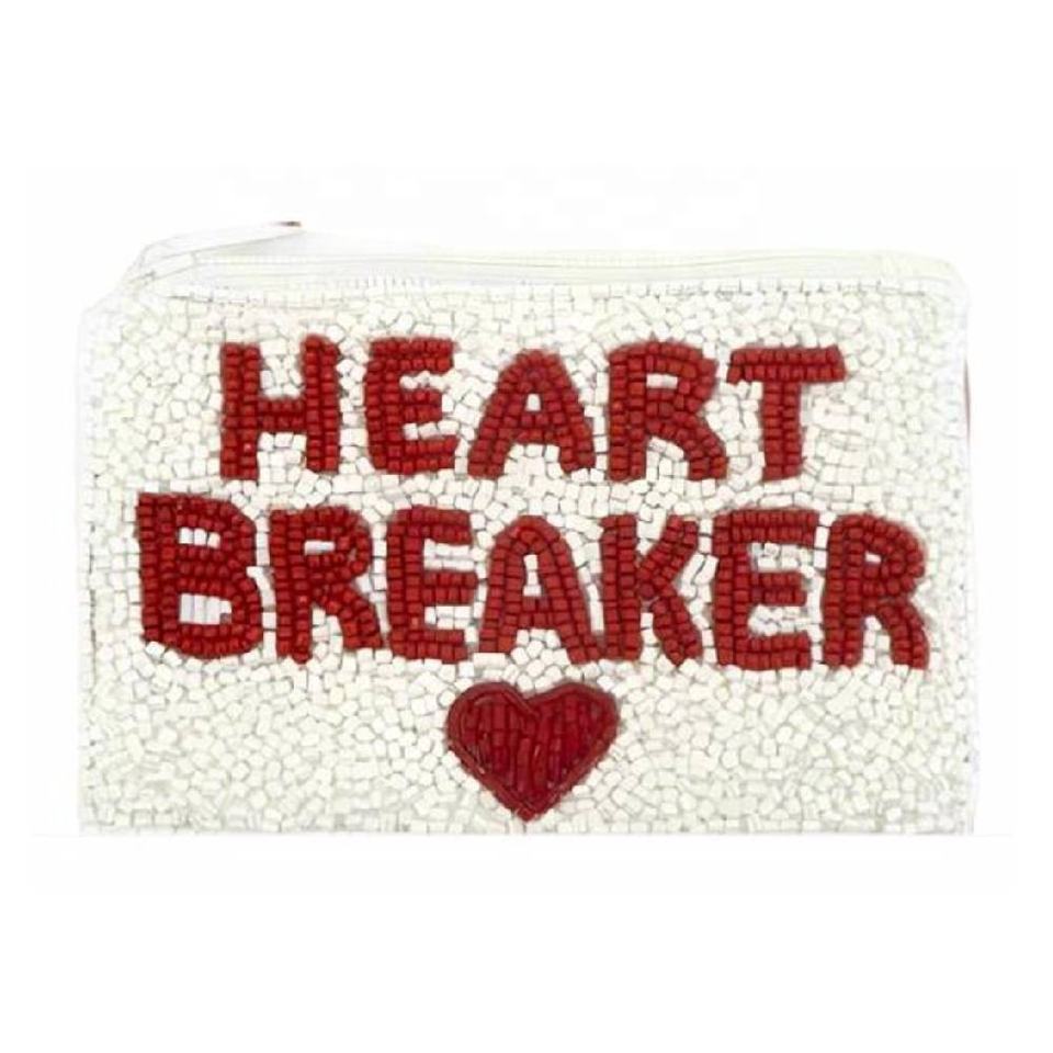 Porte-monnaie mini à motif de lettres perlées Heart Breaker, fermeture éclair, écologique, portefeuille pour femme, petite pochette de rangement