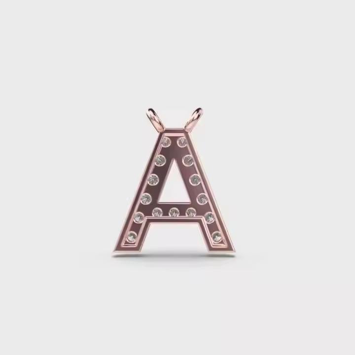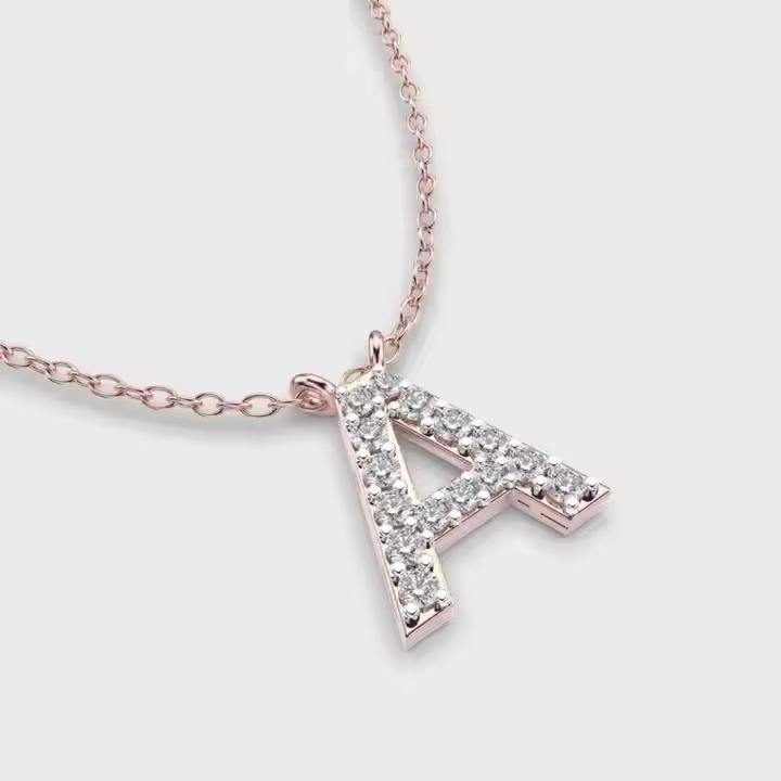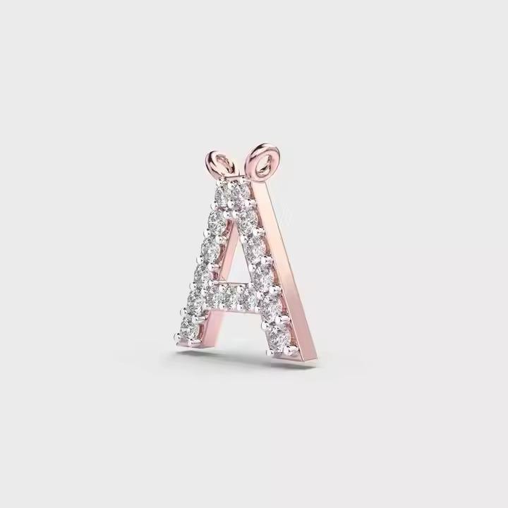 Pendentif Alphabet Amour en Or 14K Plaqué Rhodium avec Moissanite, Design Personnalisé en Forme de Cœur, Collier Minimaliste Sans Chaîne