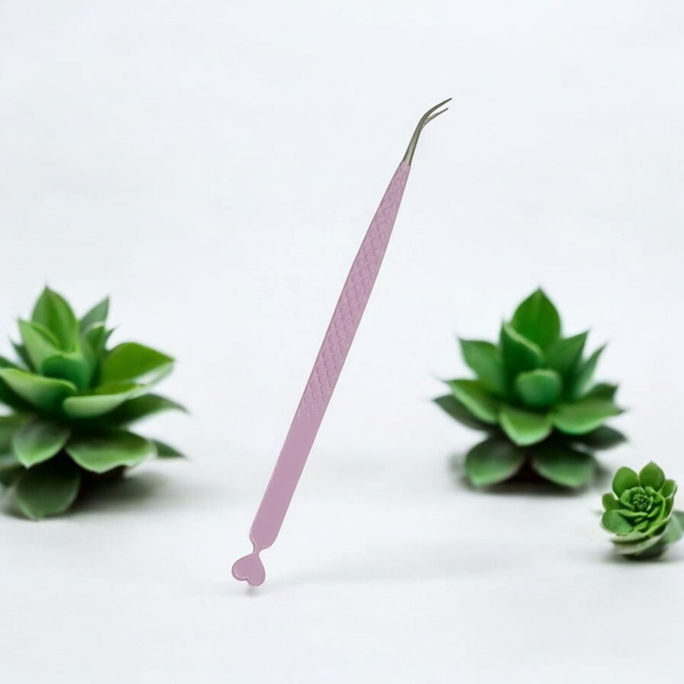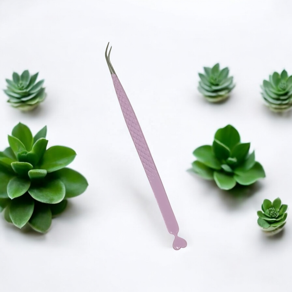 Pince à épiler incurvée d'extension de cils en acier inoxydable finition impression diamant Design coeur