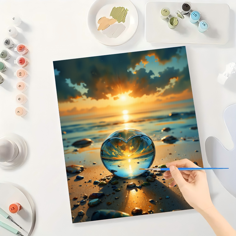 Kit de peinture coucher de soleil en verre de coeur par numéros pour adultes-DIY verre en forme de coeur réfléchissant coucher de soleil 16x20 pouces, cadeaux d'art sans cadre