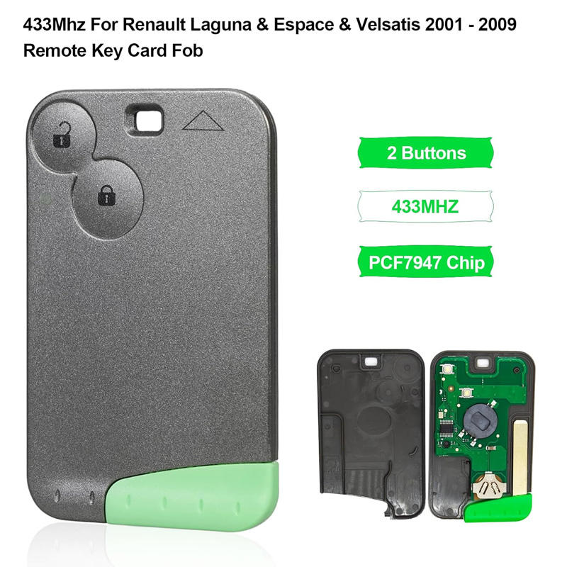 Coque de clé de voiture de remplacement Heart House à 2 boutons, grise, 433 MHz, puce PCF7947, télécommande pour 2 Clio 3 Espace Vel-Satis