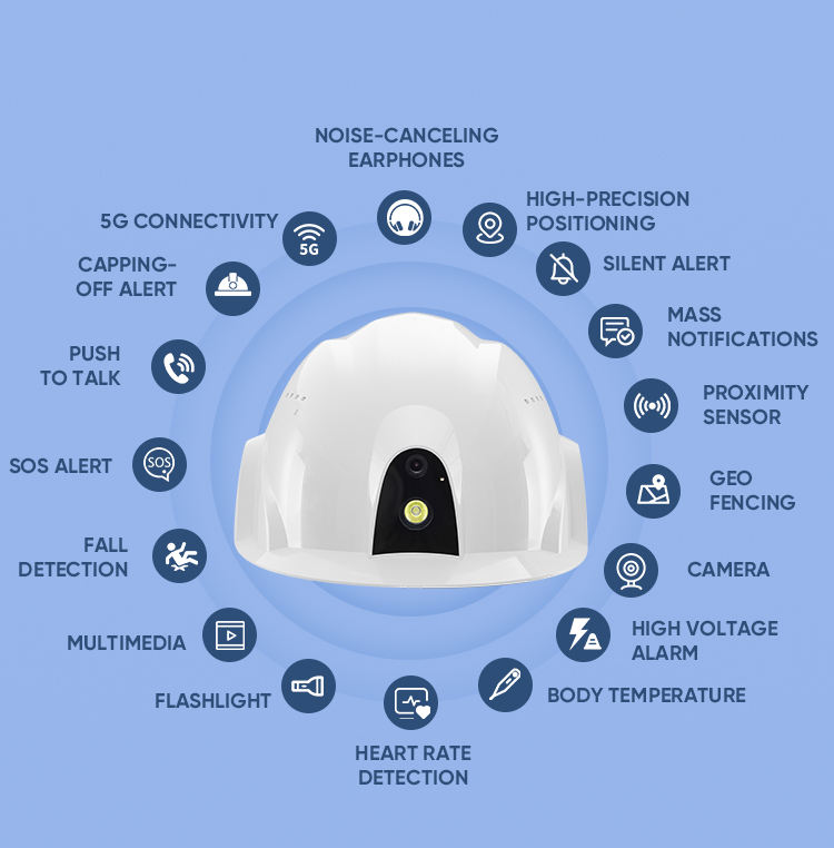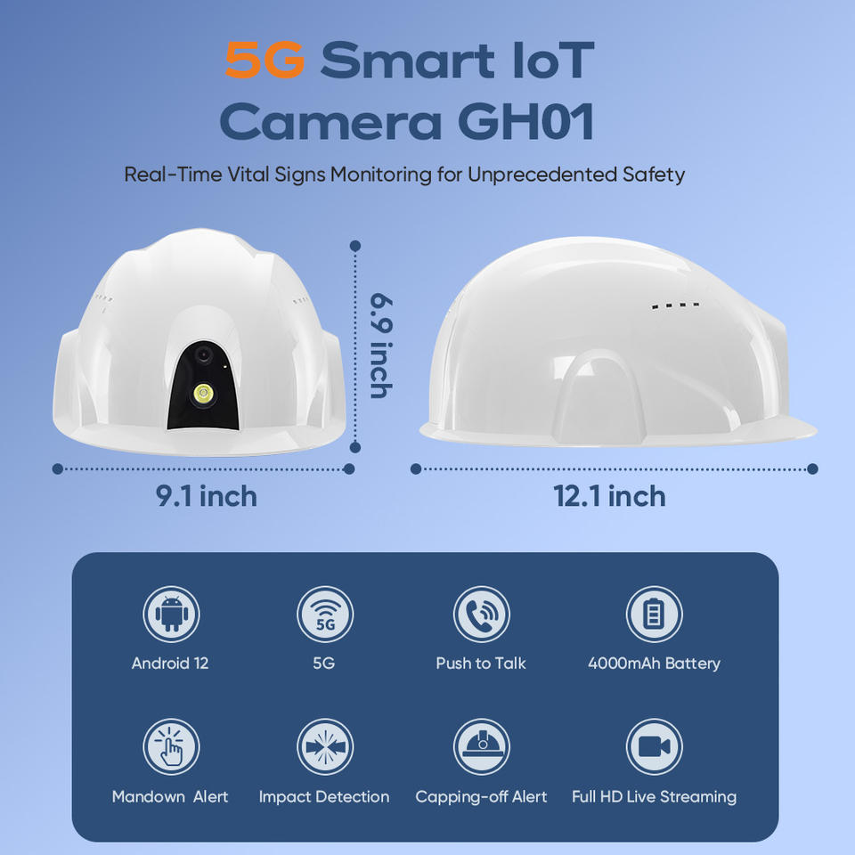 Moniteur de fréquence cardiaque étanche 5G Caméra numérique avancée IOT Moniteur vidéo audio Anti-vibration Casque de sécurité avec lampe de poche