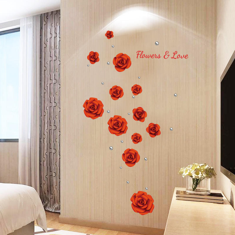Autocollant mural en forme de cœur et de rose, 60x90cm, en PVC, imperméable, décoration moderne pour la maison, chambre à coucher, salon, saint-valentin