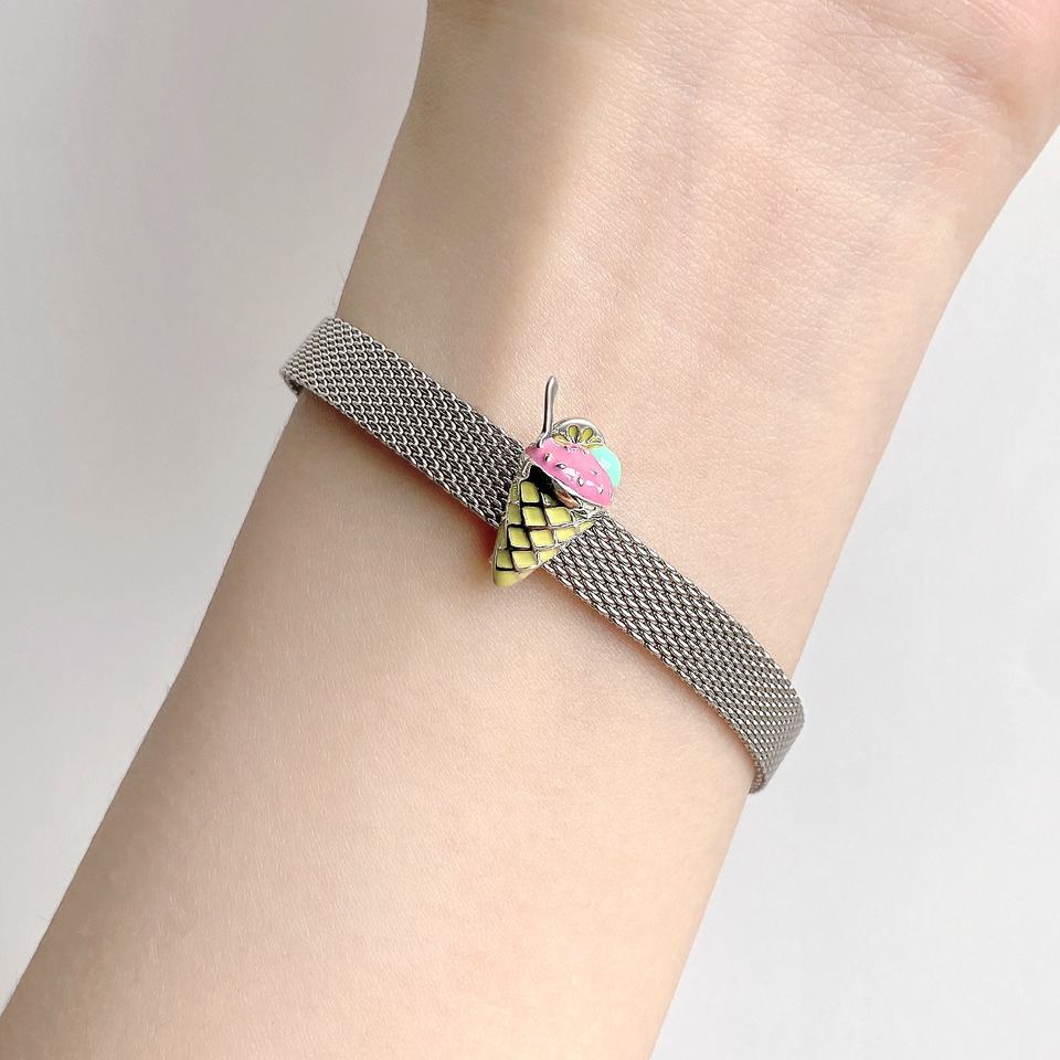 Perle de crème glacée en argent Sterling 925, 2 pièces, en forme de cœur, breloque authentique, pour Bracelets réfléchissants, accessoires bijoux pour femmes, cadeaux pour filles