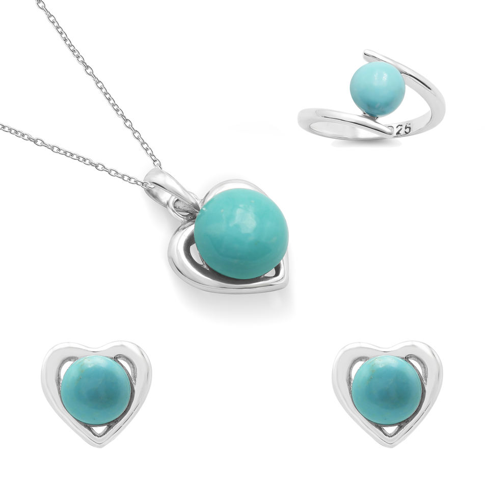 Coeur Forme Designer Solide 925 En Argent Sterling Naturel Rond Turquoise Gemme Minimal Anneau Boucles D'oreilles Collier Fine Bijoux Ensembles