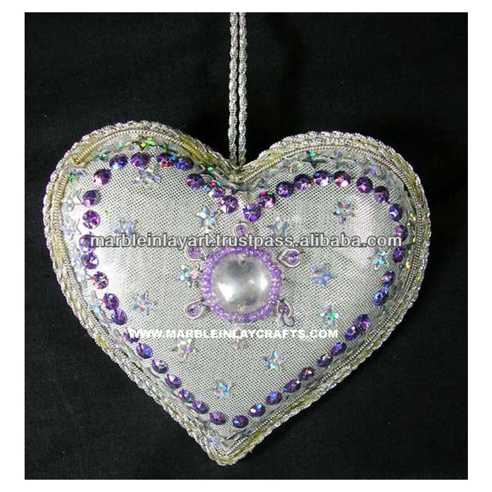 Décoration de Noël en forme de cœur brodée à la main Ornements suspendus