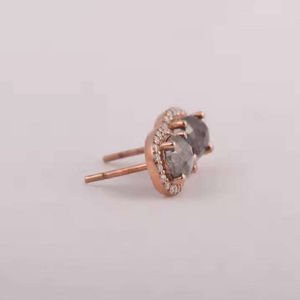 Boucles d'oreilles en diamant de laboratoire taille brillant en forme de cœur, style punk en argent et or rose / Certifiées IGI, cadeau de mariage, bijoux pour femme