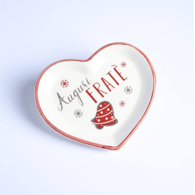 Assiette en forme de cœur Auguri Frat, design de Noël pour cadeau frère