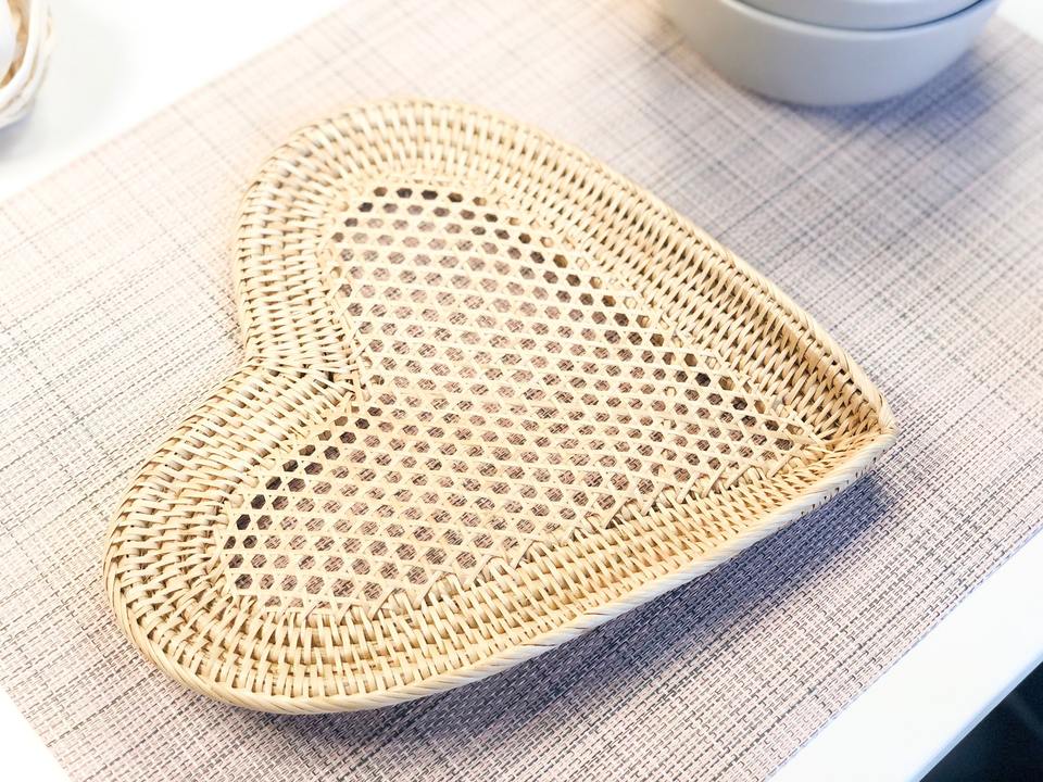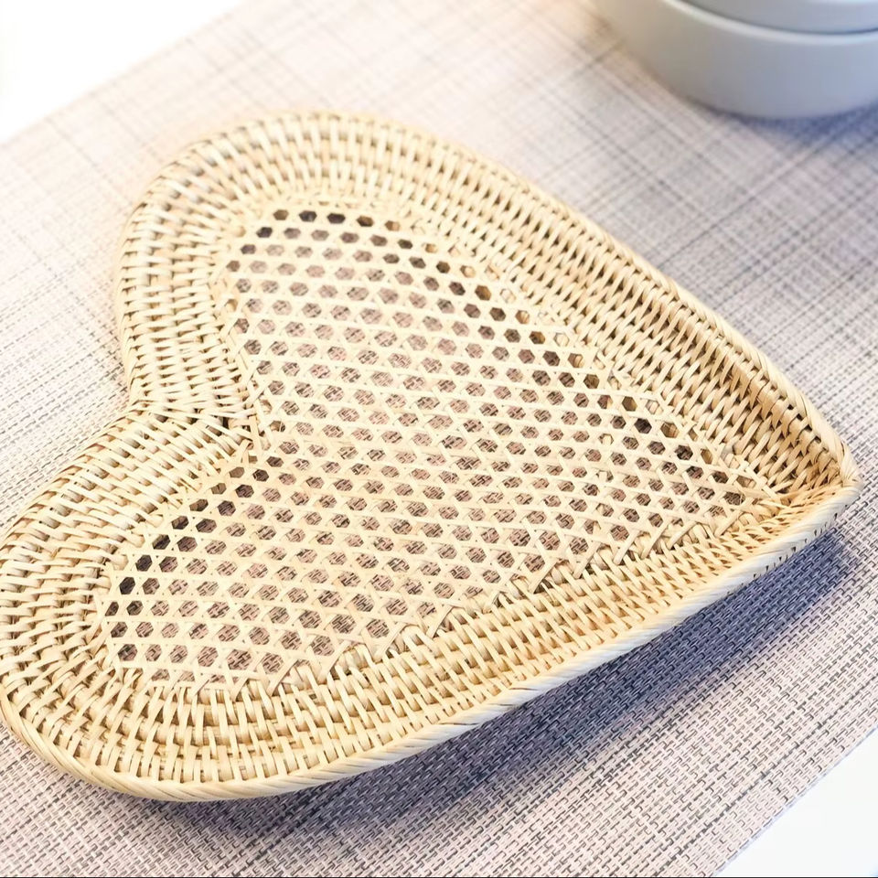 Plateau de service en rotin en forme de cœur, fait main, tressé, pour collations, biscuits, chocolat, décoration de table et panier cadeau