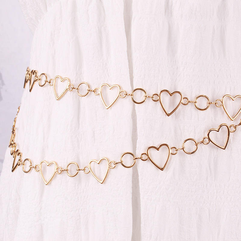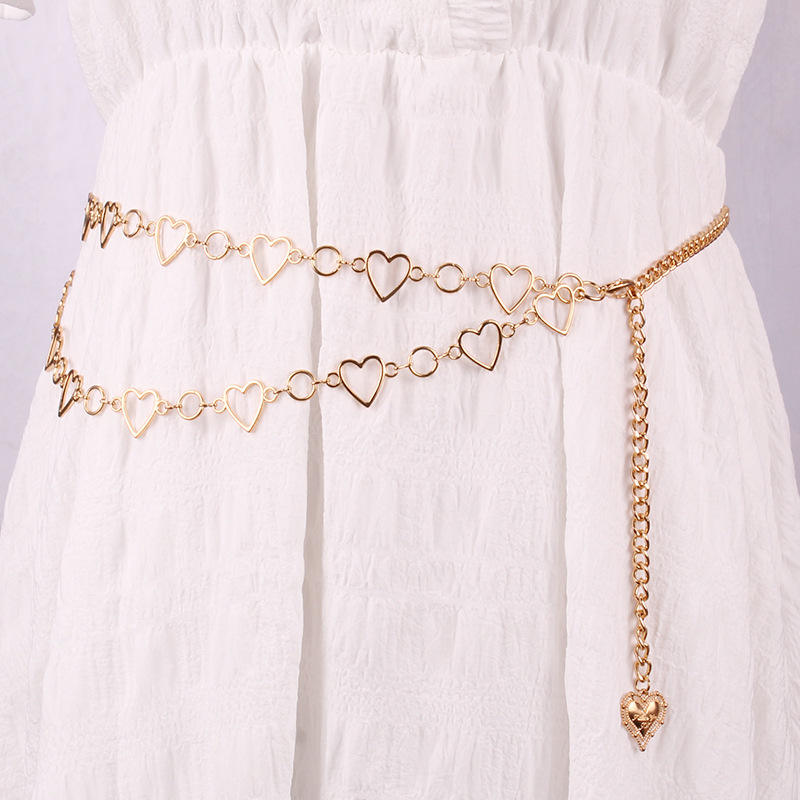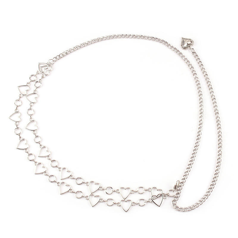 Heart Shape Waist Chain Double Layer Hollow Women's Fashion Body Chain Zinc Alloy Valentine'S Day Decorative Belt
