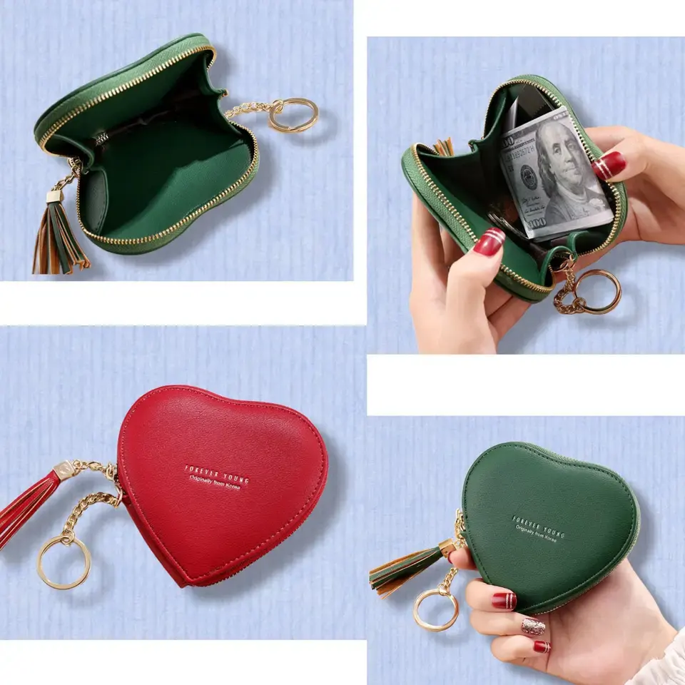 Porte-monnaie en forme de cœur pour femme, petit portefeuille en cuir avec clip porte-clés, porte-monnaie pour les courses, les rendez-vous et les voyages