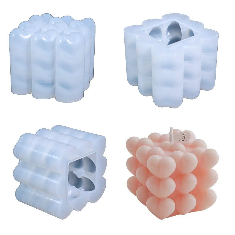 Moule en silicone décoratif en forme de cœur pour bougie d'aromathérapie, cube Rubik, colle goutte à goutte, gypse, mousse, outil de cuisson pour gâteaux